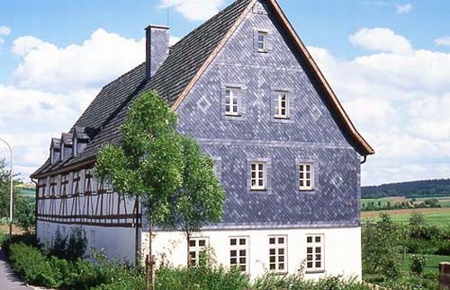 Das von der evangelischen Kirchengemeinde erworbene Hofbauers-Anwesen wurde sehr einfühlsam zum Kirchengemeindhaus umgebaut. Die Stallungen wurden abgerissen, wodurch eine größere Menge Sockel-Sandsteine frei wurden, die für die Neugestaltung der Außenanlagen als Trockenmauern wiederverwendet werden konnten. Das Anwesen liegt am Ortsrand und hat auf zwei Seiten Beziehung zur Landschaft.