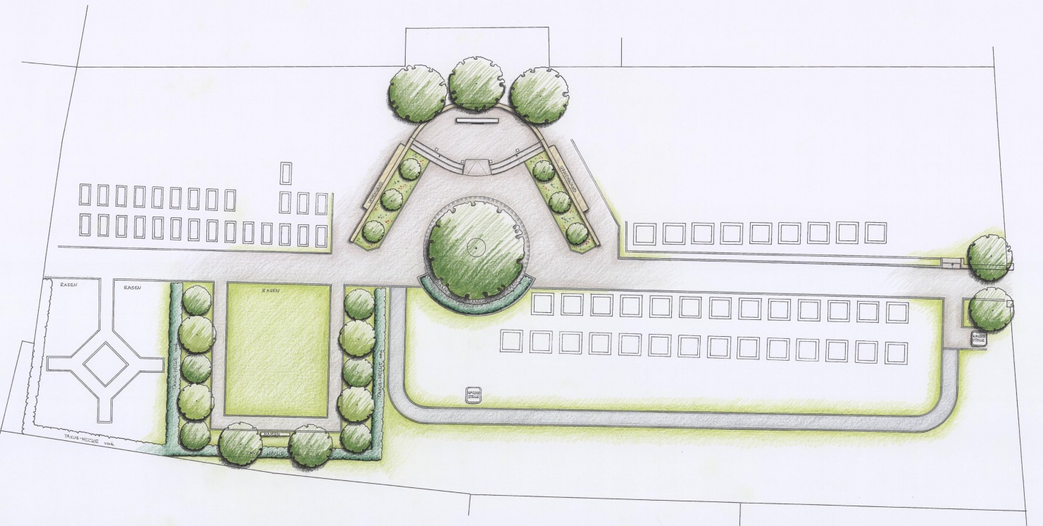 Vor einigen Jahren musste die alte Linde an zentraler Stelle im Friedhof gefällt werden. Die Aussegnungshalle verlangte dringend nach Renovierung. Hier stellte sich die Frage: Renovierung oder Abriss? Letzteres wurde entschieden. Somit wurde eine Neugestaltung des zentralen Bereiches des Friedhofs nötig. - Außerdem sollte das in die Jahre gekommene Pflaster des Hauptweges erneuert und ein weiteres Urnenfeld angelegt werden.