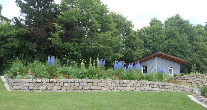 Es handelt sich um ein ca. 2500 qm großes Südhang-Grundstück, das von den Auftraggebern (einem jungen Ehepaar mit Kindern) bereits teilweise selbst gestaltet wurde, z.B. ein mit einer Kalkstein-Trockenmauer gebautes Beet für Gemüse und Kräuter.