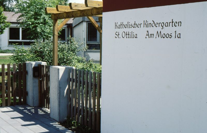 Die Außenanlagen des an einer Straßeneinmündung liegenden Kindergartens waren seit Jahrzehnten praktisch unverändert. Der durch die Grenzöffnung stark angestiegene Verkehr brachte eine erhebliche Lärm- und Staubbelastung. So war es eine der vorrangigsten Aufgaben, eine dichte Lärm- und Sichtschutzpflanzung anzulegen. Es galt die für das Kinderspiel unattraktiven Außenanlagen kinder- und spielfreundlich umzugestalten. Die Bepflanzung sollte keinesfalls nur Abstandsgrün, sondern vielfältig für die Kinder nutzbar sein und ihnen die Fülle der Pflanzenwelt näher bringen.