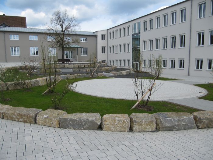 Im Zuge einer Teilrenovierung der Gebäude der Mittelschule Oeslau (Stadt Rödental) sollte auch der Schulhof umgestaltet werden. Das Konzept umfasst den ganzen Schulhof; der Bereich vor dem nicht sanierten Gebäude wird erst in einigen Jahren gebaut.