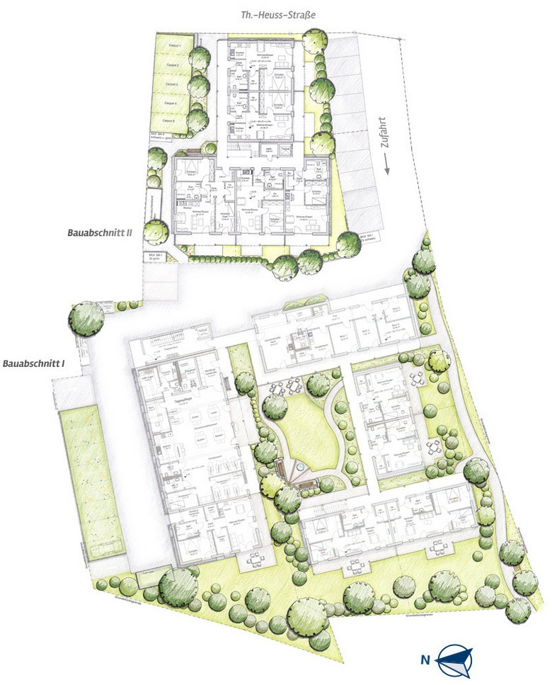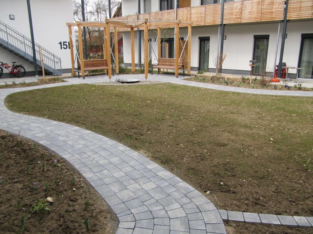 Das Ensemble, integriert sich harmonisch ins Ortsbild. Der zentrale Innenhof fungiert als windgeschützter Aufenthaltsraum im Freien für gemütliche Treffen, ein kurzes Schwätzchen, kleine Feiern oder gemeinsame Stunden an der frischen Luft. Zusätzlich ermöglicht der Gemeinschaftsraum und die dort stattfindenden Veranstaltungen Abwechslung und Austausch.