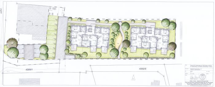 Außenanlage zu einer Eigentums-Wohnanlage der gehobenen Klasse, bestehend aus 2 Häusern.